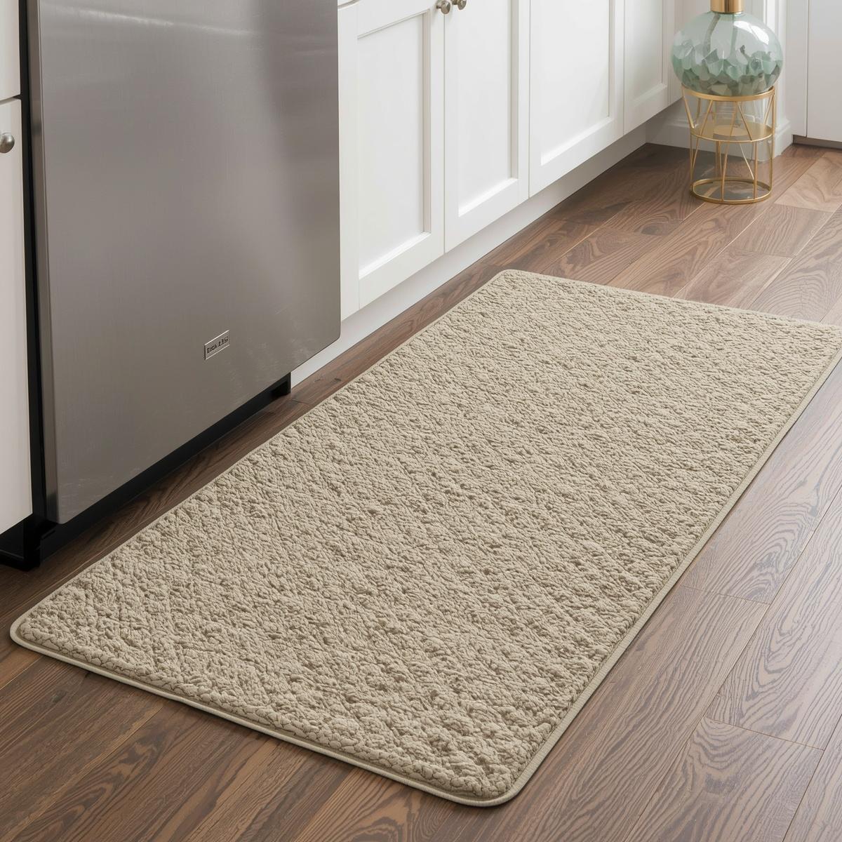 | Say goodbye to aching feet and lower back pain with the Homvera Anti-Fatigue Kitchen Mat. Designed for those who spend extended periods standing at the stove, sink, or laundry area, this premium mat utilizes a ¾-inch thick, high-density ergonomic foam core. This specialized cushioning absorbs pressure and significantly reduces stress on your feet, knees, joints, and lower back, promoting better posture and improved circulation. The surface is crafted from a durable, waterproof polyurethane material that effortlessly repels water, oils, and accidental food spills. Simply wipe it down with a damp cloth for a spotless clean in seconds. Safety is a top priority; therefore, the mat features a highly effective slip-resistant backing that keeps it firmly anchored to any hard floor surface, whether tile, wood, or laminate. Additionally, the gracefully beveled edges are designed to prevent the mat from curling, eliminating frustrating tripping hazards. With its modern, subtle geometric pattern, it seamlessly integrates into your home decor while providing unparalleled, all-day comfort. |
